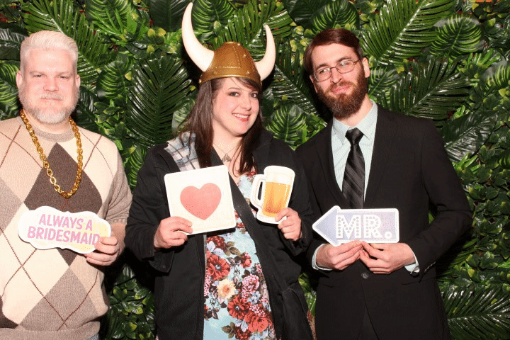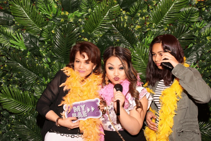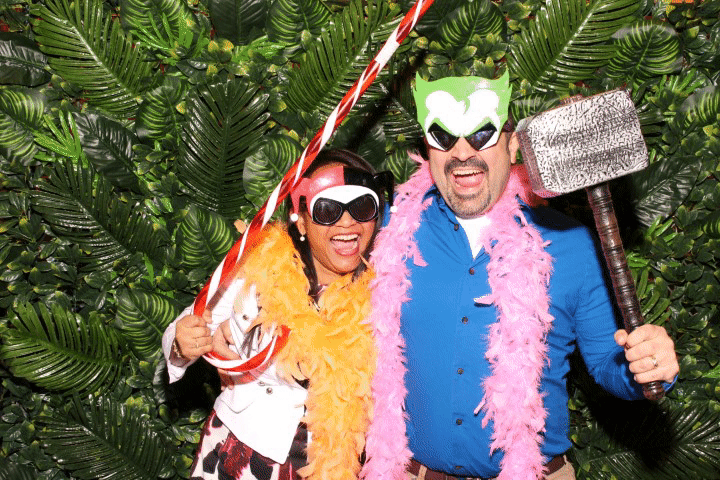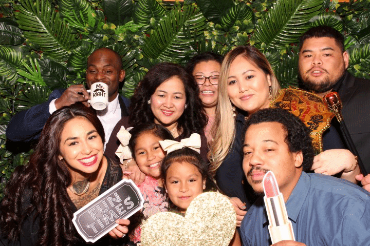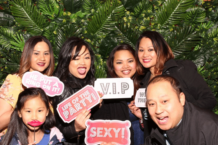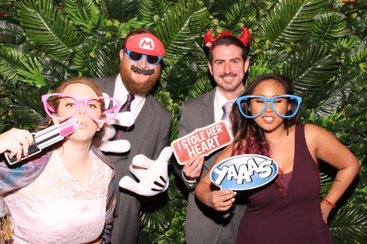 The Modern Glam Photo Booth had Custom Tropical Greenery Backdrop! Our new Photo Booth attendant, Erica, did a great job and had tons of fun with all the guests.